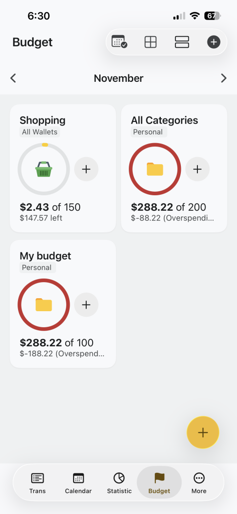 Money Tracker will show your progress and notify you when you’re close to or exceed the limit.