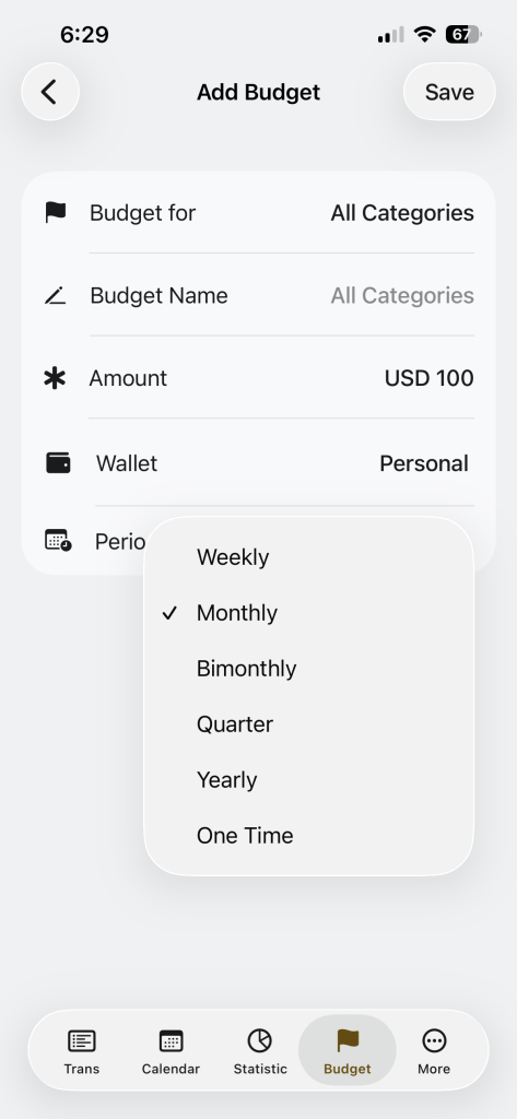 - Tap Budget Name
