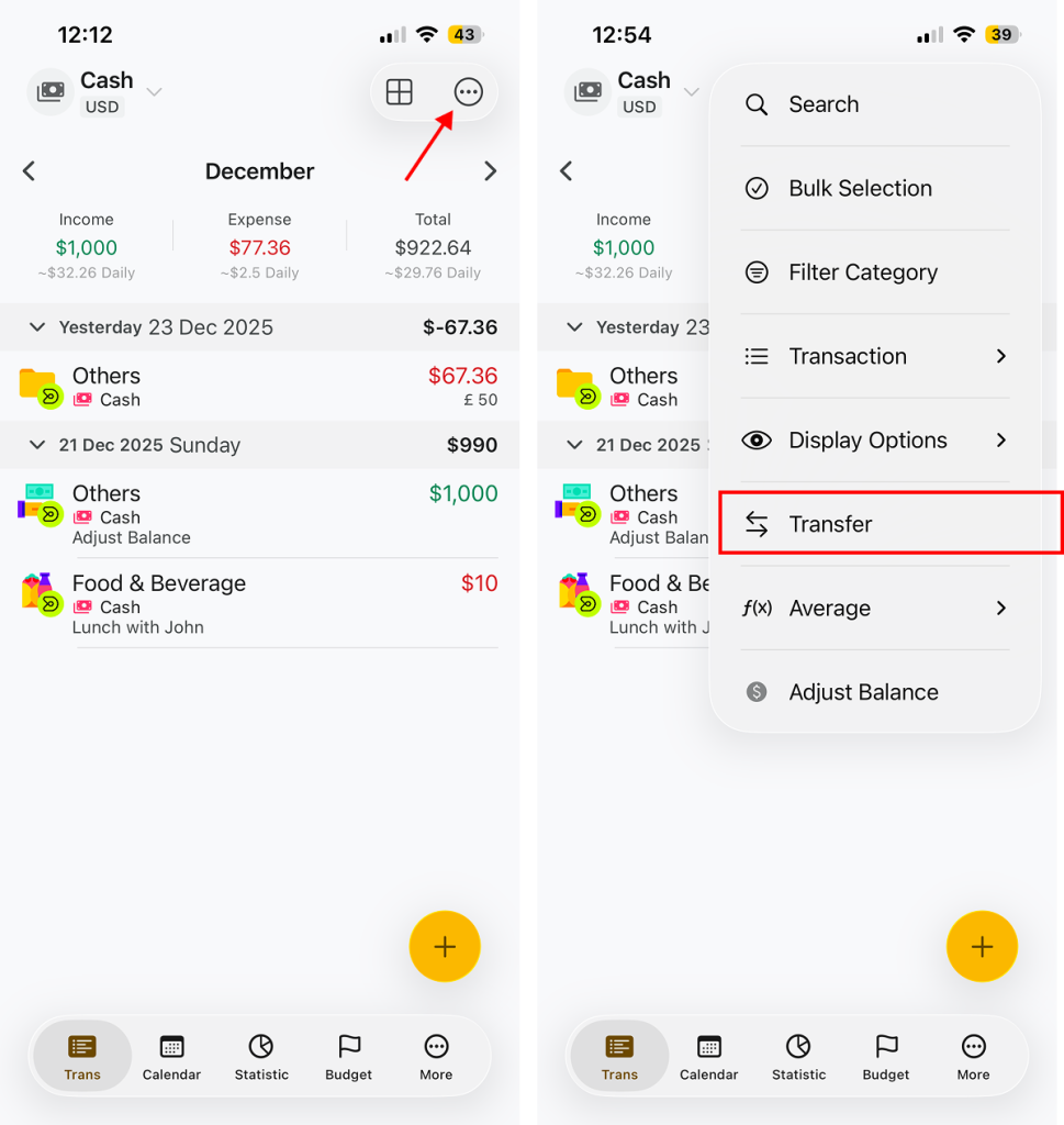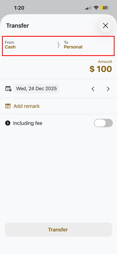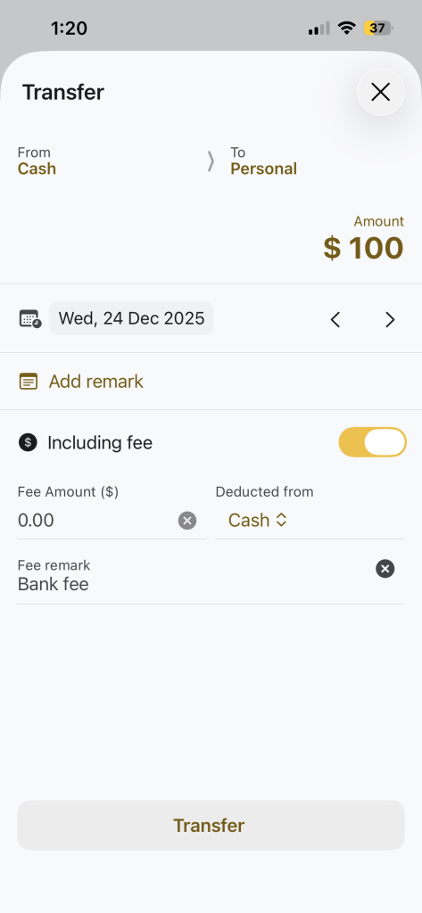 Transferring between wallets lets you move money from one wallet to another, such as from Cash to Savings.